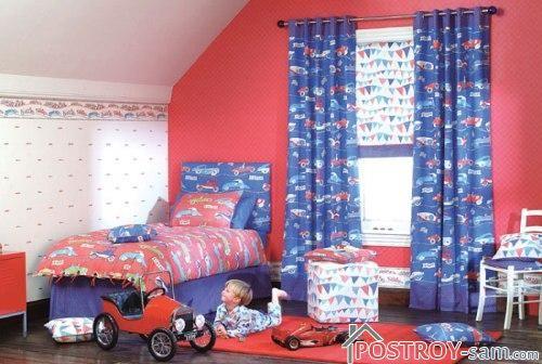- маленьким мальчикам нравятся шторы ярких расцветок, поэтому, создавая интерьер комнаты для ребенка нужно учитывать, что серые и бледные тона совсем не подходят для детской;