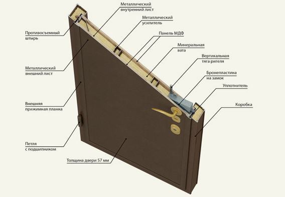 С точки зрения шумоизоляции, по своей конструкции лучшей входной дверью считается полотно многослойной структуры. В некоторых случаях дверь, изготовленная, из одного материла, увеличивает уровень шума в помещении. Стоит помнить, что металл по своим физическим свойствам является хорошим проводником звука. Поэтому, вполне оправданным решением станет установка входной металлической двери, изготовленной по принципу сэндвич-панелей. Данная технология подразумевает под собой включение металлической двери в специальную звукоизоляционную прослойку.