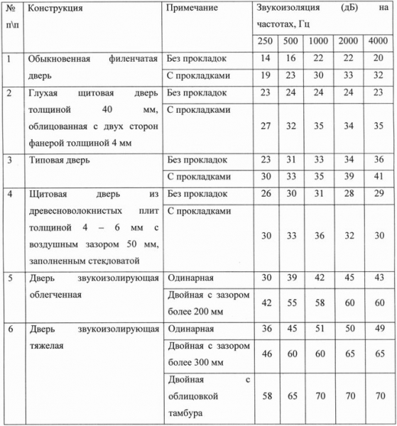 Таблица звукоизоляции дверей.