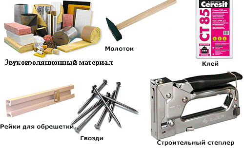 Инструменты для монтажа звукоизоляции.