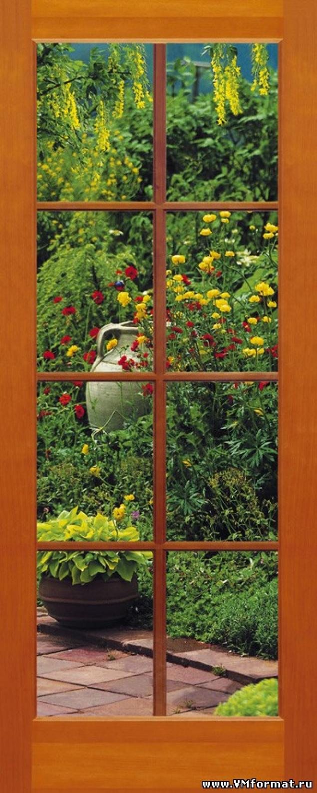 Да , существуют фотообои на дверь, они так и называются., встречала видов около 15-ти. Только их клеить надо на гладкое полотно, без филенок, а потом лаком закреплять желательно.