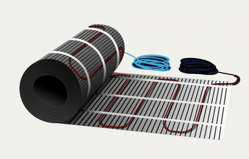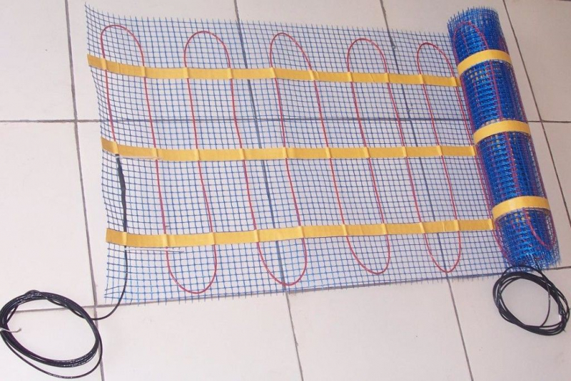 Нагревательные маты. Выполнены в виде тончайшей стекловолокнистой сетки, толщиной 3 мм, на которой крепится кабель. Нагревательные маты поступают для монтажа свернутыми в рулоны, что значительно облегчает их укладку. Благодаря использованию клея для плитки, напольная поверхность может эксплуатироваться уже через 2-3 часа.