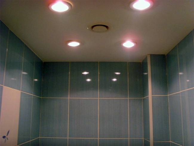 - монтаж обычных светильников в такой потолок категорически запрещён, для этого используются только специальные осветительные приборы, обладающие степенью защиты от влаги;