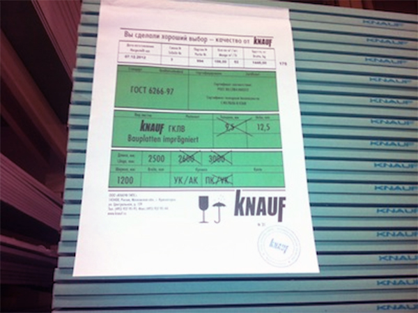 В большинстве случаев листы гипсокартона устойчивого к влаге имеют синий или зелёный цвет, но подобный окрас не считается просто обязательным. Каждый производитель КГЛВ может применять собственную маркировку.