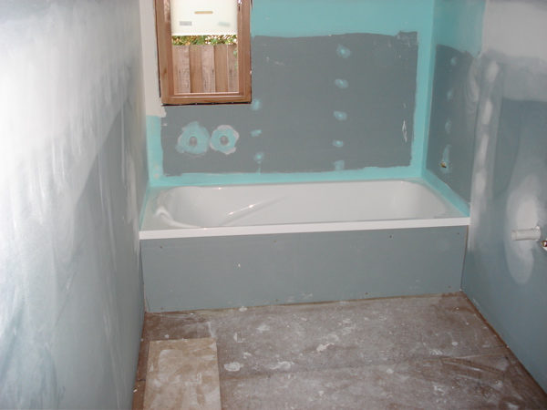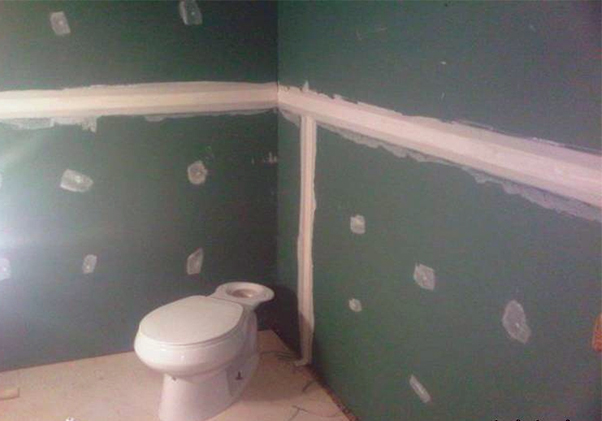 - Нужно сделать надёжную изоляцию от влаги по периметру помещения. Все края листов гипсокартона устойчивого к влаге следует отделать мастикой или обмотать водоизоляционной мембраной. Большое внимание необходимо уделять тем местам, где будет делаться соединение с покрытием для пола или потолком.