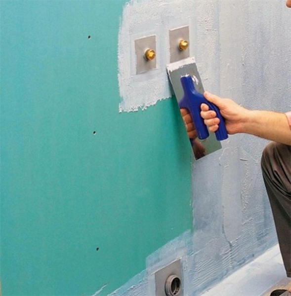 - Все стыки армируют. Все места крепежей покрывают влагостойкой шпатлевкой для стыков.
