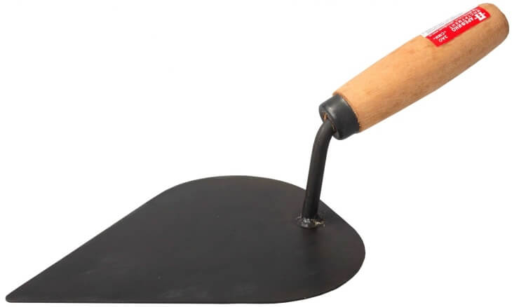 Этот инструмент напоминает обычную кельму или мастерок, но имеет довольно большую площадь и зачастую прямоугольную форму. С помощью лопатки также осуществляется набрасывание материала, но уже в те места, где его недостаточно. Лопатка это более точный штукатурный инструмент способный захватывать раствор понемногу, поэтому его обычно применяют как вспомогательный инвентарь к ковшику.