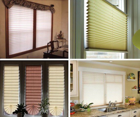 - Шторки-гармошки — плиссе. При правильном их изготовлении, они внесут изюминку во внутреннее оформление комнаты.
