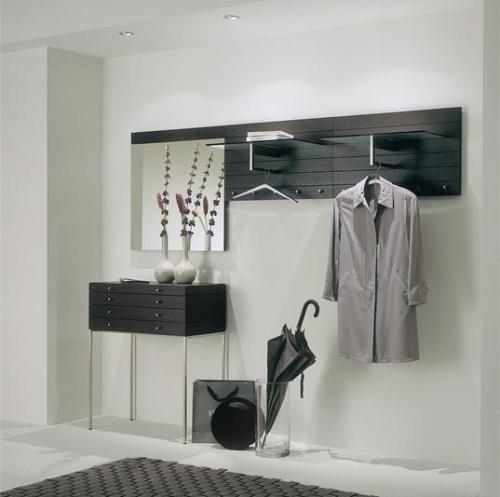Первым правилом является избавление от громоздкой мебели. Старые образцы вешалок, на которых круглый год висят шубы, лучше заменить шкафом-купе, куда можно спрятать не только верхнюю одежду, но и головные уборы, обувь, зонты, и различные мелочи. Другие необязательные предметы мебели – пуфики, тумбочки и т.д. – лучше убрать совсем – им здесь не место. Более практичное решение – использование подвесных полочек или устройство ниши в стене, которые не занимают полезную площадь. Располагаться они должны таким образом, чтобы не сковывать движений, но при этом на высоте, позволяющей с легкость до них дотянуться.