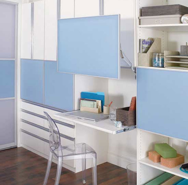 Более традиционными можно считать выезжающие и поднимающиеся столешницы — откидные части стола. Этот прием уже давно известен и довольно широко применяется.
