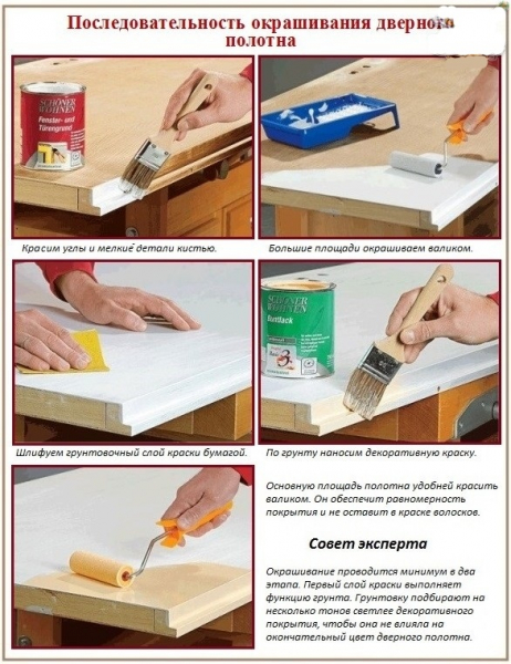 - Несмотря на кажущуюся простоту, в покраске есть свои нюансы, так чтобы состав лег ровно и без потеков полотно лучше снять с петель и красить горизонтально;