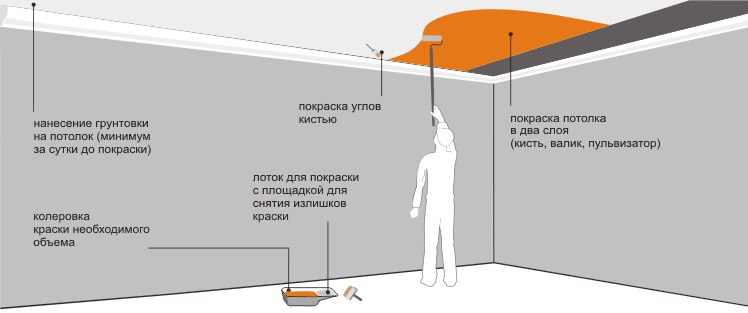 Стадии покраски потолка, нюансы работы