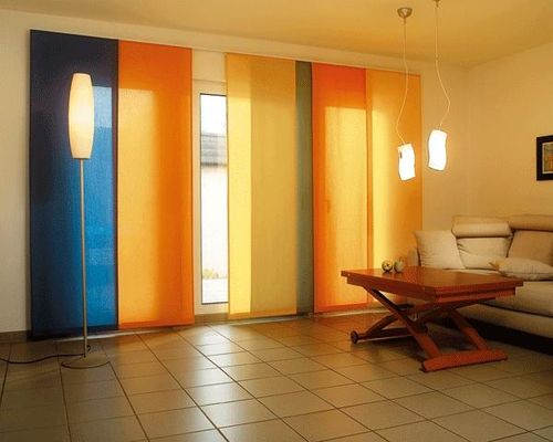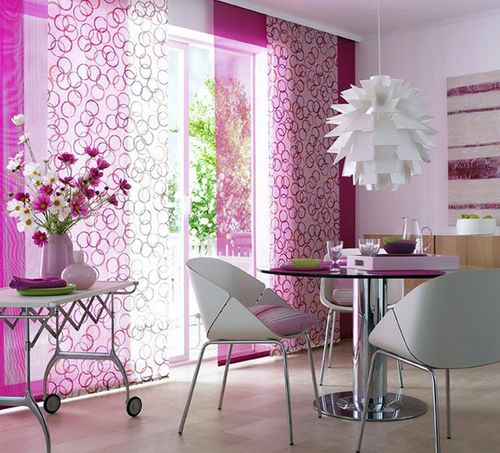 - яркие цвета, в которых выполнен такой занавес, слегка расширяют пространство, особенно, когда занавески изготовлены из полупрозрачных, «летящих» тканей;
