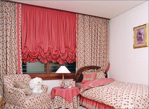 В детскую подбирают шторы, защищающие от яркого света. Чаще всего это сочетание легкой прозрачной вуали с плотными портьерами. Также шторы могут быть с рисунком героев любимых мультфильмов (вариант для самых маленьких). Слишком яркие цвета для занавесок в детской не рекомендуют использовать, так как они будут раздражать нервную систему ребенка, не давая уснуть или просто успокоится.