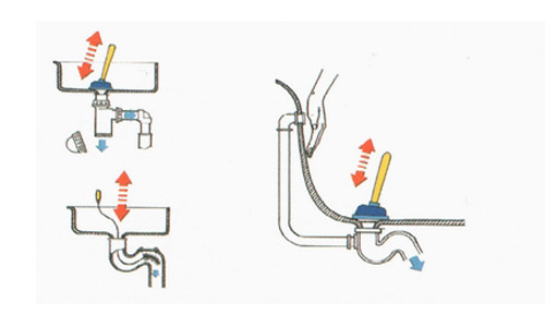 Принцип работы вантуза основан на создании избыточного давления. Оно проталкивает мусорную пробку, восстанавливая отток воды. Для максимального давления необходимо закачать воздух в резиновую насадку несколько раз.