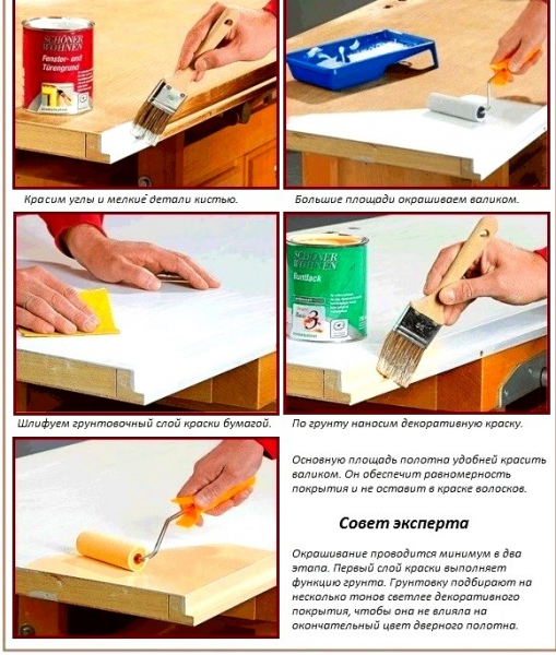 Последовательность окрашивания дверного полотна.