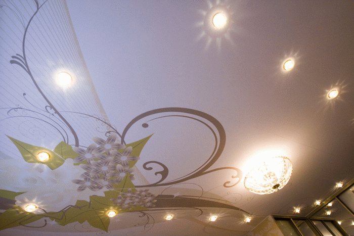Идеально подойдут под цветную и монотонную облицовку потолка. Единственным ограничением является высокая мощность ламп, поэтому, если монтаж гипсокартона с натяжным полотном, то нужно будет увеличить расстояние между пластиком и лампой, иначе пластик постепенно оплавится.
