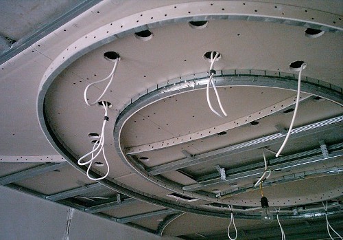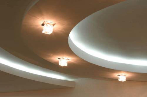 Многоуровневые потолки лучше делать в больших комнатах, для небольших помещений достаточно сделать 1-2 уровня. Наилучшими светильниками для гипсокартонных многоуровневых потолков являются: