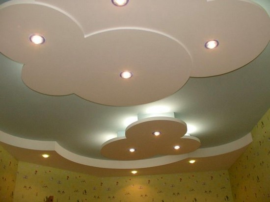Для комнаты детей можно использовать солнечные, интересные цвета и дизайны – подойдут фотопечать, яркие радужные подсветки, светильники оригинальной формы. Двухуровневый потолок можно сделать с иллюзией неба и облаков (для этого поможет фотопечать на потолочном полотне). Подвесные элементы с мерцающими эффектами помогут создать нужную атмосферу. В качестве декорирующих элементов подойдут любые рисунки, которые нравятся детям. По контуру этих рисунков можно располагать подсветку. Любой ребенок будет в восторге.