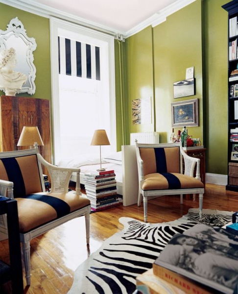 Эта гамма может использоваться не только в качестве дополнения, но и в общем тоне. Причем, чтобы добиться достаточно респектабельного вида зала или спальни, то стоит использовать осеннюю зеленую палитру именно при оформлении стен. Не исключается дополнение и более яркой, летней палитрой зеленого тона, при помощи которого можно расставить акценты.