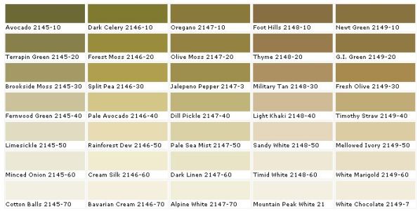 Кроме этих используются и такие оттенки как: лаймовый, миртовый, хаки, нефритовый, папоротниковый, травяной.