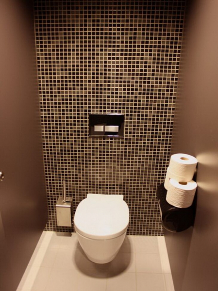 Интересные идеи для оформления стен туалета мозаикой: