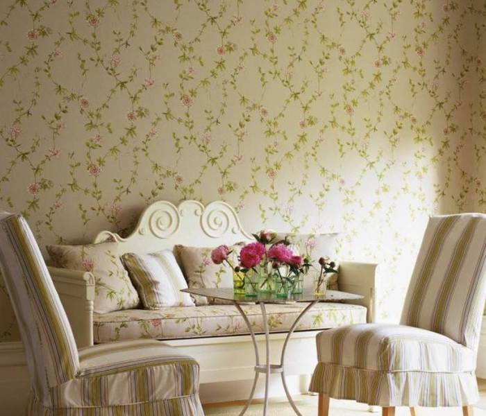 Обои «под ситец» особенно уместны в интерьерах загородных домов, но и в обычной квартире таким обоям будет место. Очень тесно такая стилистика переплетается с прованскими мотивами, но все же отличия есть.