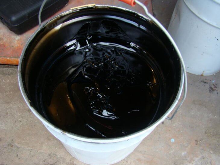 - Праймербитумный готовится с помощью растворения битума в бензине. Чтобы это сделать нужно расплавить имеющийся битум и остудить его до метки в 80 градусов. Потом бережно и порционно вливать получившуюся расплавленную смесь в бензин, регулярно размешивая. Когда вы получите гомогенную массу ее необходимо процедить через сетку из металла, у которой ячейки имеют размер 50*50 мм