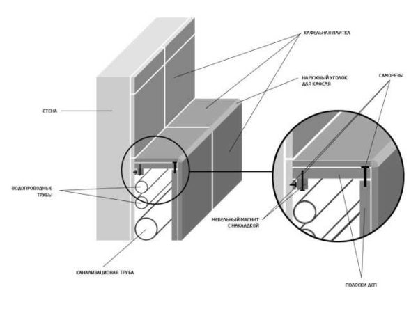 Способ спрятать трубы в ванной, проложенные вдоль стены