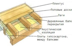 Если же проводится полная замена пола, после демонтажа и уборки необходимо выполнить цементную стяжку. Можно применить самовыравнивающуюся смесь. После чего проводится грунтовка основания и укладка гидроизоляционного материала. Сверху кладут тепло- и звукоизоляционный материал, а затем доски пола.