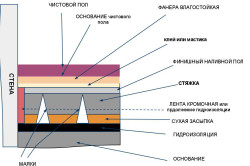 - Поверхностная обработка мастикой, которая нужна для самовыравнивающихся полов.