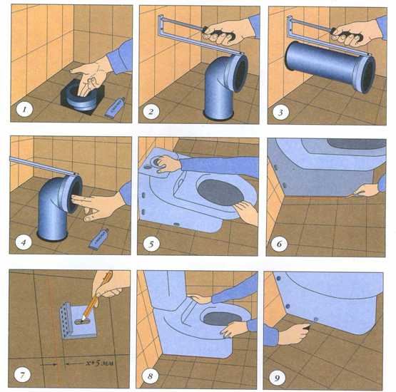 Схематически порядок работ при монтаже унитаза с инсталляцией можно представить в виде ряда основных шагов: