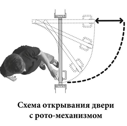 Свое название эти двери получили от ротационного движения, которое они совершают. Мы привыкли к распашным дверям, которые требуют как минимум одного свободного квадратного метра для открывания.