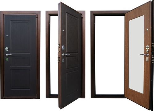 - Дверное полотно — представляет собой сборную конструкцию из высокопрочной оцинкованной стали, пространство между которыми заполнено минеральной ватой, служащей дополнительной тепло- и звукоизоляцией. Некоторые модели полотен снабжены фирменным бронированием. По периметру полотна, для улучшений этих качеств, устанавливается резиновый или полимерный уплотнитель;