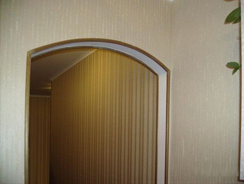 Деревянный уголок лучше использовать для арочных проемов из такого-же материала. Согнуть его трудно, поэтому поклеить можно на прямые плоскости. Идеальное использование – прямоугольные порталы, где круглый элемент отсутствует.