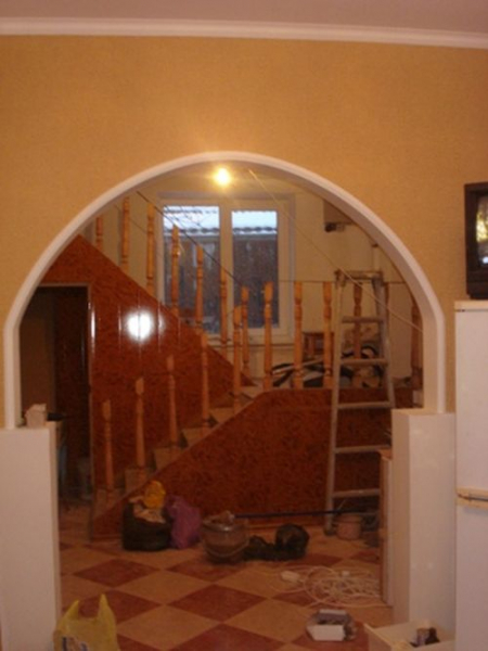 Арка относится к классическим конструктивным элементам и используется в качестве элемента дизайна. При этом, находясь в зоне активной эксплуатации, данная конструкция очень сильно подвержена мелким деформациям (сколы, трещины и т.п.). Ввиду чего еще на этапе проведения отделочных работ, желательно защитить внешние углы арочной конструкции посредством наложения (приклеивания) декоративных уголков.