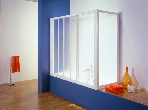 - Раздвижные, в которых чередуются подвижные и неподвижные составляющие. Благодаря системе слайдер, к ванной удобно подходить с любой стороны.