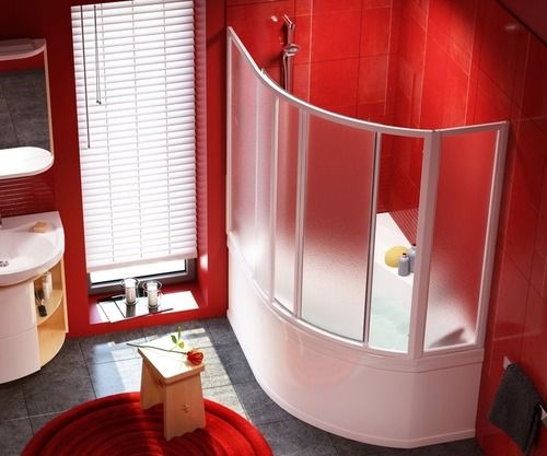 Шторы четырехсекционные легко превращают ванную в душевую кабину. Преимущественно их используют для угловой ванны. В таком случае она получается полностью отгороженной. С точки зрения особенностей конструкции, они могут быть полностью бескаркасные или иметь алюминиевую раму. Для их производства может использоваться легкий, дешевый, но недолговечный пластик или закаленное стекло, имеющее защитное покрытие.