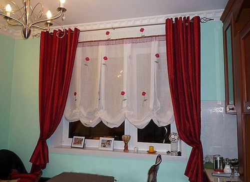 В качестве материала для коротких занавесей могут использоваться натуральные или синтетические ткани.