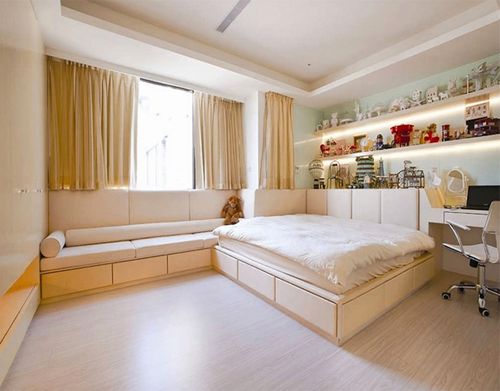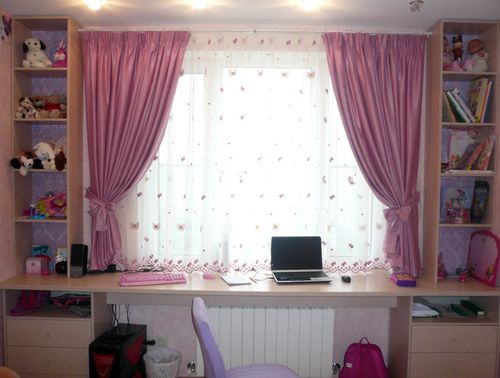 Такие модели занавесок позволяют освободить место под окном для установки мебели, к примеру кровати или туалетного столика.