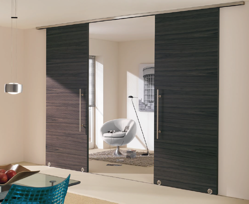 Выдвижные двери — система, отличающаяся способом своего открывания. Применяется она в основном для установки межкомнатных дверей. Как ясно из названия, особенность их состоит в том, что они не открываются на себя или от себя, а сдвигаются в сторону, вдоль стены. Достигается это с помощью особого типа креплений — роликов, передвигающихся по прикрепленной к стене металлической направляющей (рельсе).