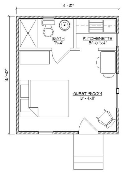 Самые маленькие жилые дачные постройки имеют размер 4 на 4 м, домики меньшей площадью делать нет смысла. Планировка в этом варианте очень проста – одна комната.