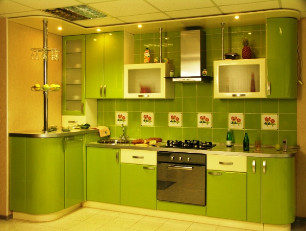 Многие отдают предпочтение светлым и свежим оттенкам зеленого. Особенно приятно находиться в такой кухне в зимнее время, когда за одном – мороз, а вы словно находитесь посреди лета.