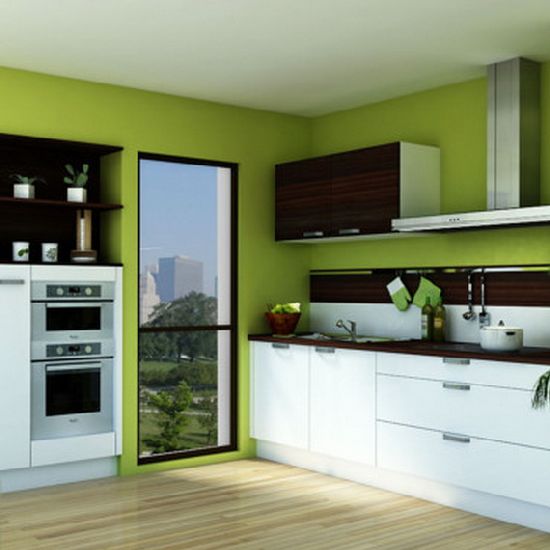 Например, зеленые стены в кухне позволят протестировать предполагаемый оттенок мебели. Перекрасить стены или переклеить обои гораздо быстрее и дешевле, чем заказывать новые фасады.
